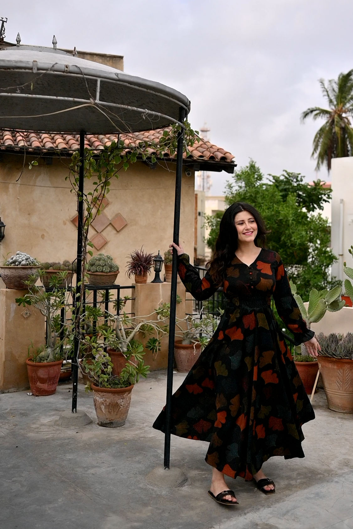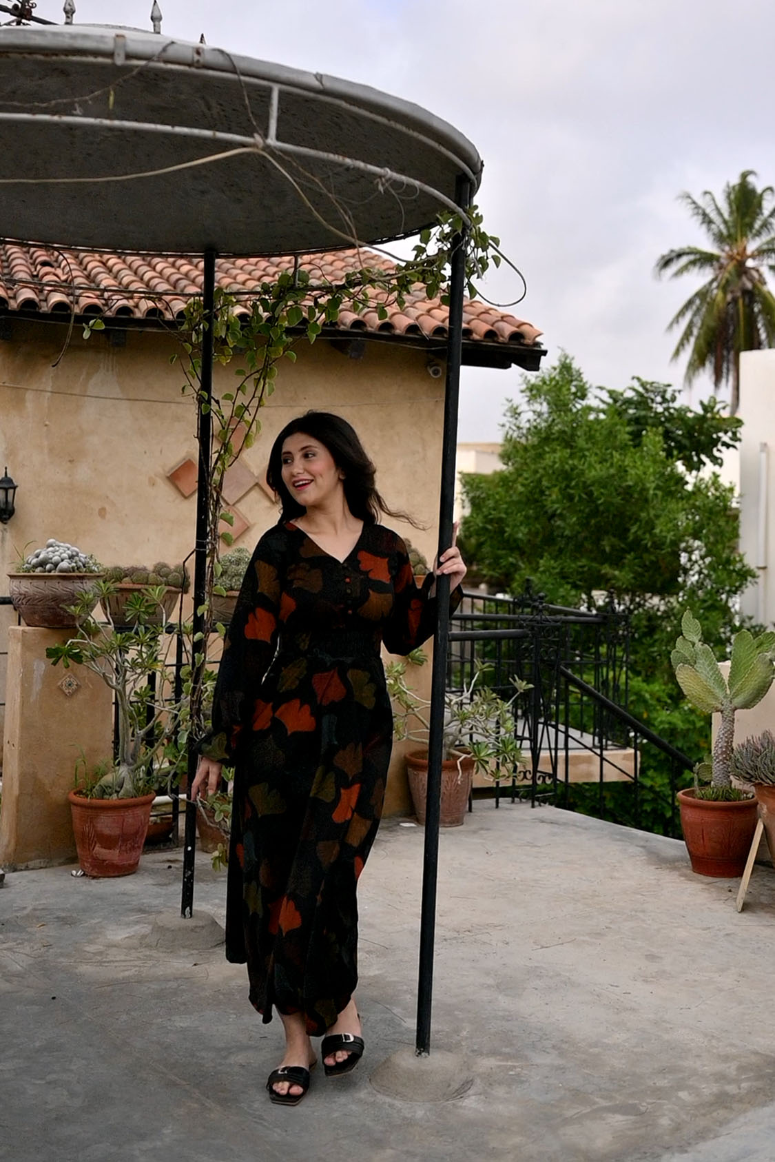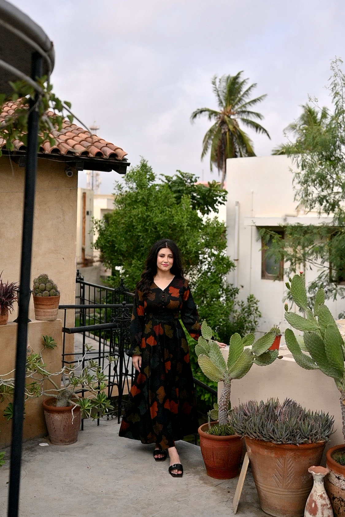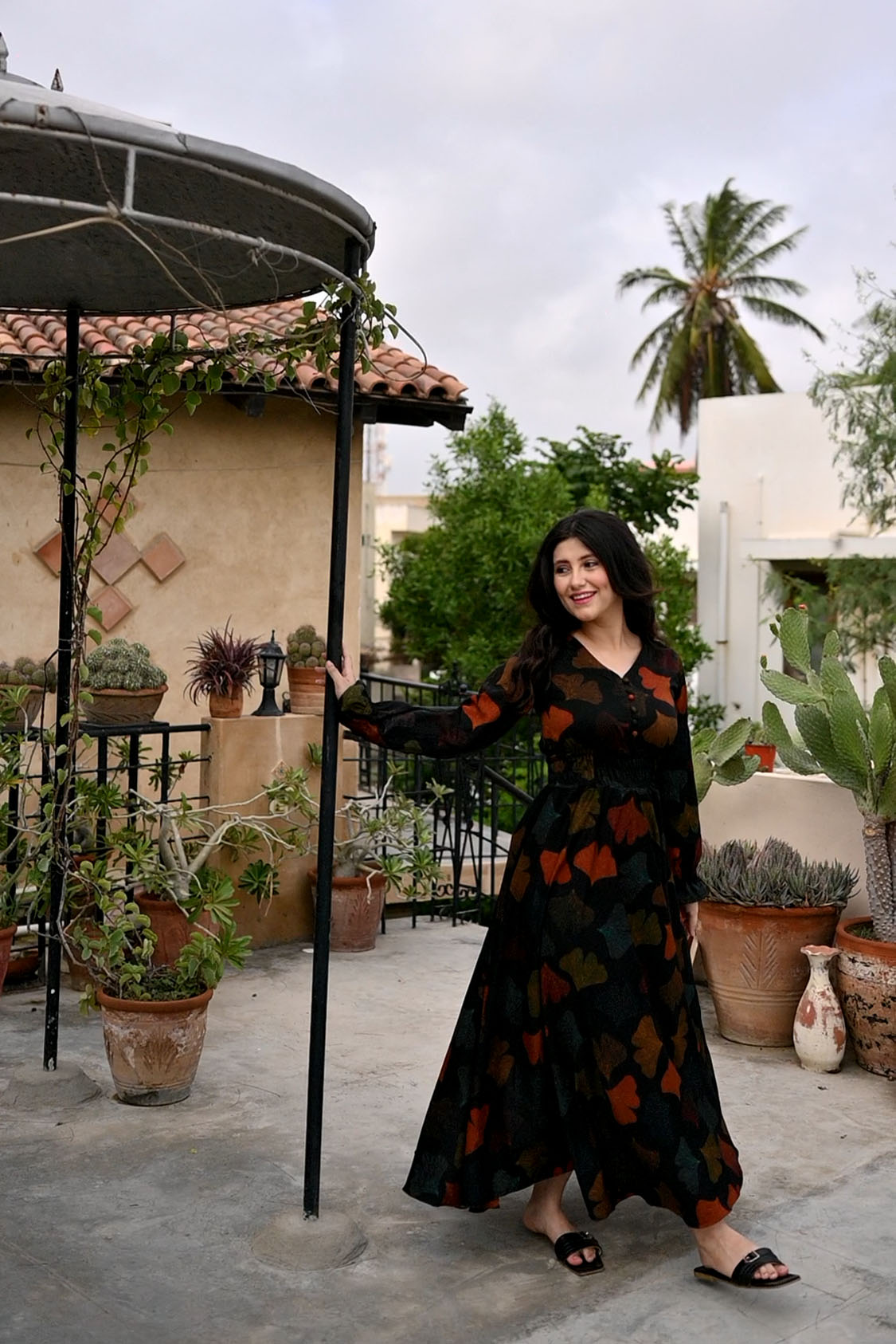 Add a touch of sophistication to your wardrobe with this Floral Long Frock, crafted from luxurious chiffon fabric. The soft floral design gives a romantic vibe, making it perfect for any season. Its lightweight texture, easy-care material, and comfortable fit make it a favorite choice for fashion-forward women.